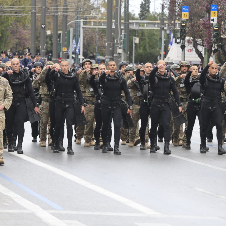 Προτού τα τεθωρακισμένα οχήματα, τα άρματα μάχης, τύπου Leopard και τα στρατιωτική αεροσκάφη τραβήξουν τα βλέμματα, αυτοί που έδωσαν πρώτοι τον ρυθμό για την μεγάλη στρατιωτική παρέλαση ήταν οι ΟΥΚ του Πολεμικού Ναυτικού.