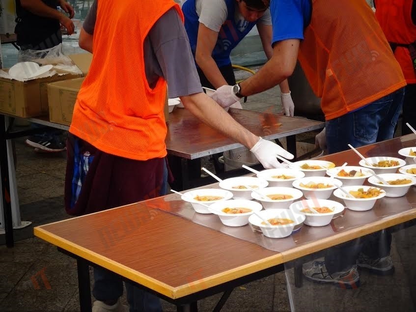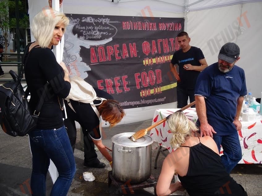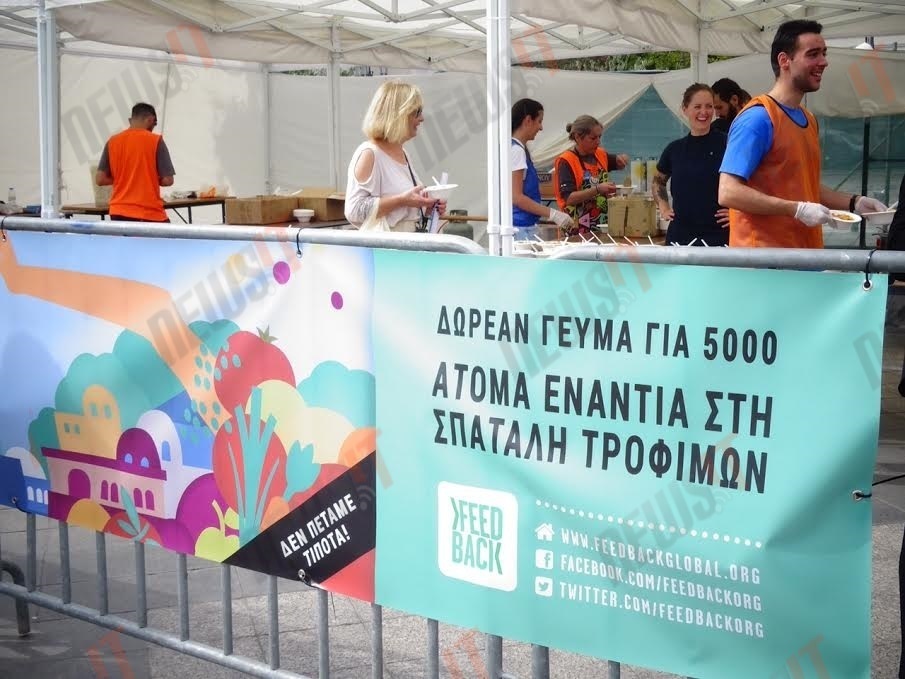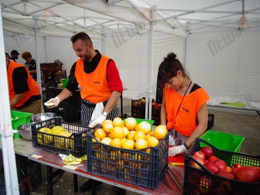 Στο μπουφέ της πλατείας διανεμήθηκαν ούτε λίγο ούτε πολύ 5.000 μερίδες μπριάμ! Το μήνυμα που κυριάρχησε στο γεύμα ήταν το “δεν πετάμε τίποτα-μαγειρεύουμε δημιουργικά”.