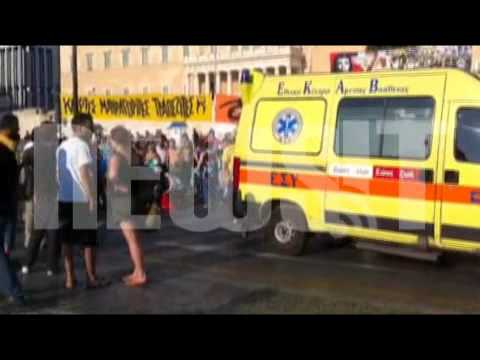 Σε αυτή του όμως την προσπάθεια, παρέσυρε έναν άνδρα περίπου 40 ετών, ο οποίος διαδήλωσε μπροστά στη Βουλή ως Αγανακτισμένος. Ο άνδρας έπεσε κάτω λιπόθυμος και ο μοτοσικλετιστής προσπάθησε να διαφύγει, αλλά του έκλεισαν το δρόμοι οι υπόλοιποι Αγανακτισμένοι και κατάφεραν να τον ακινητοποιήσουν.