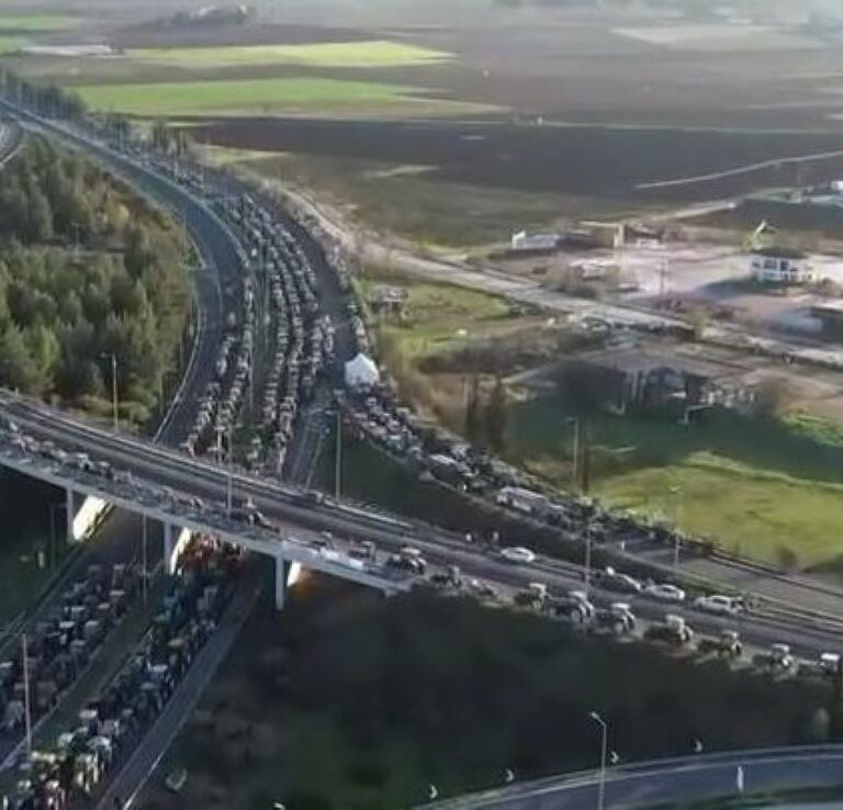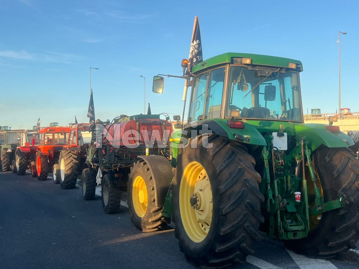 Οι εικόνες από το drone στο Mega είναι χαρακτηριστικές. Αμέτρητα είναι τα τρακτέρ που έχουν παραταχθεί στην εθνική οδό στον κόμβο της Νίκαιας.