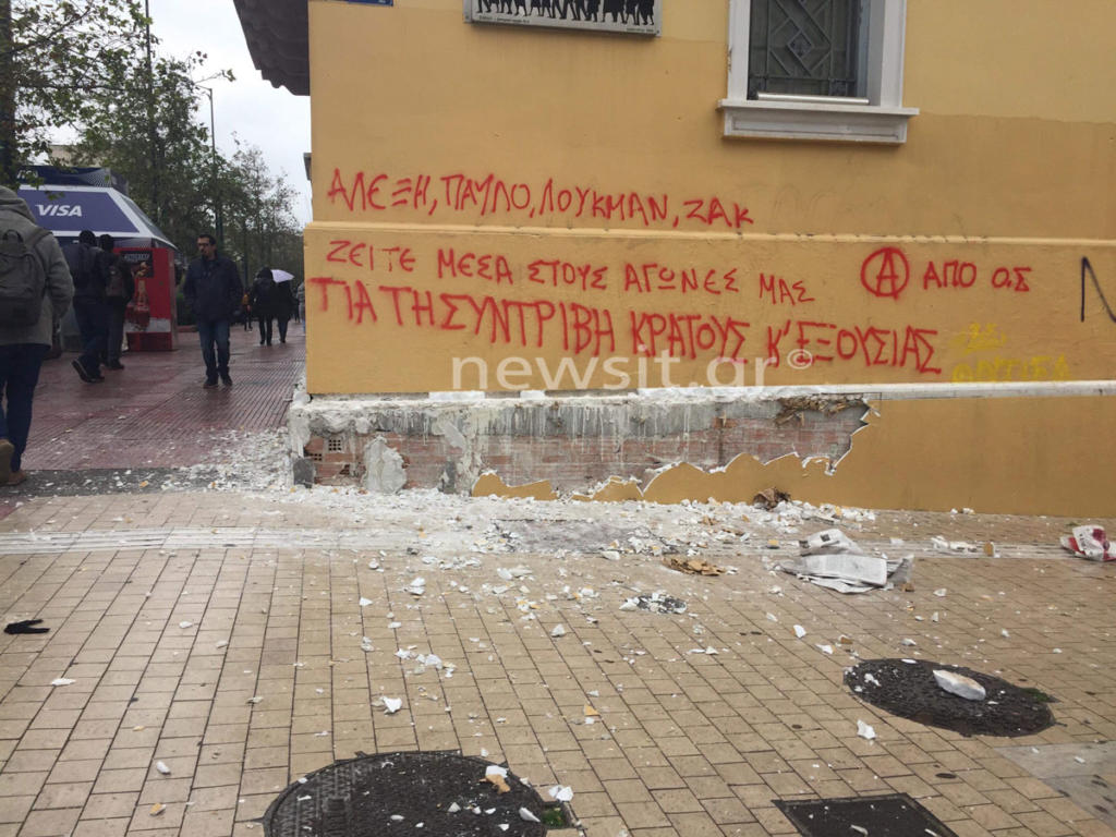 Οι νεαροί με τις κουκούλες που επιτέθηκαν στα ΜΑΤ μετά τη χρήση δακρυγόνων από τους αστυνομικούς κατέφυγαν στα γύρω στενά.