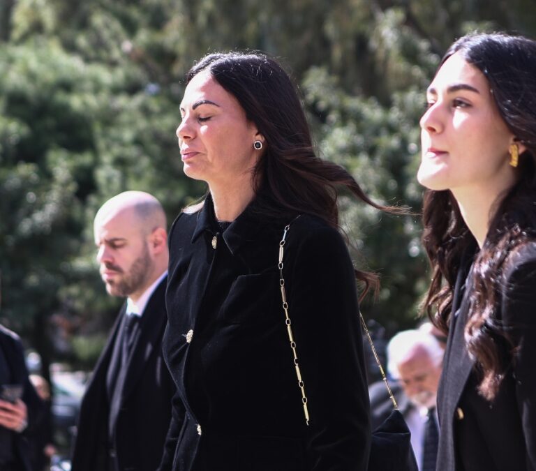 Τα δυο παιδιά του ποινικολόγου, ο Χρίστος και η Μάιρα, έφτασαν μαζί στο νεκροταφείο ενώ 15 λεπτά μετά έφτασε και η Εύη Βατίδου, η πρώην σύζυγός του.