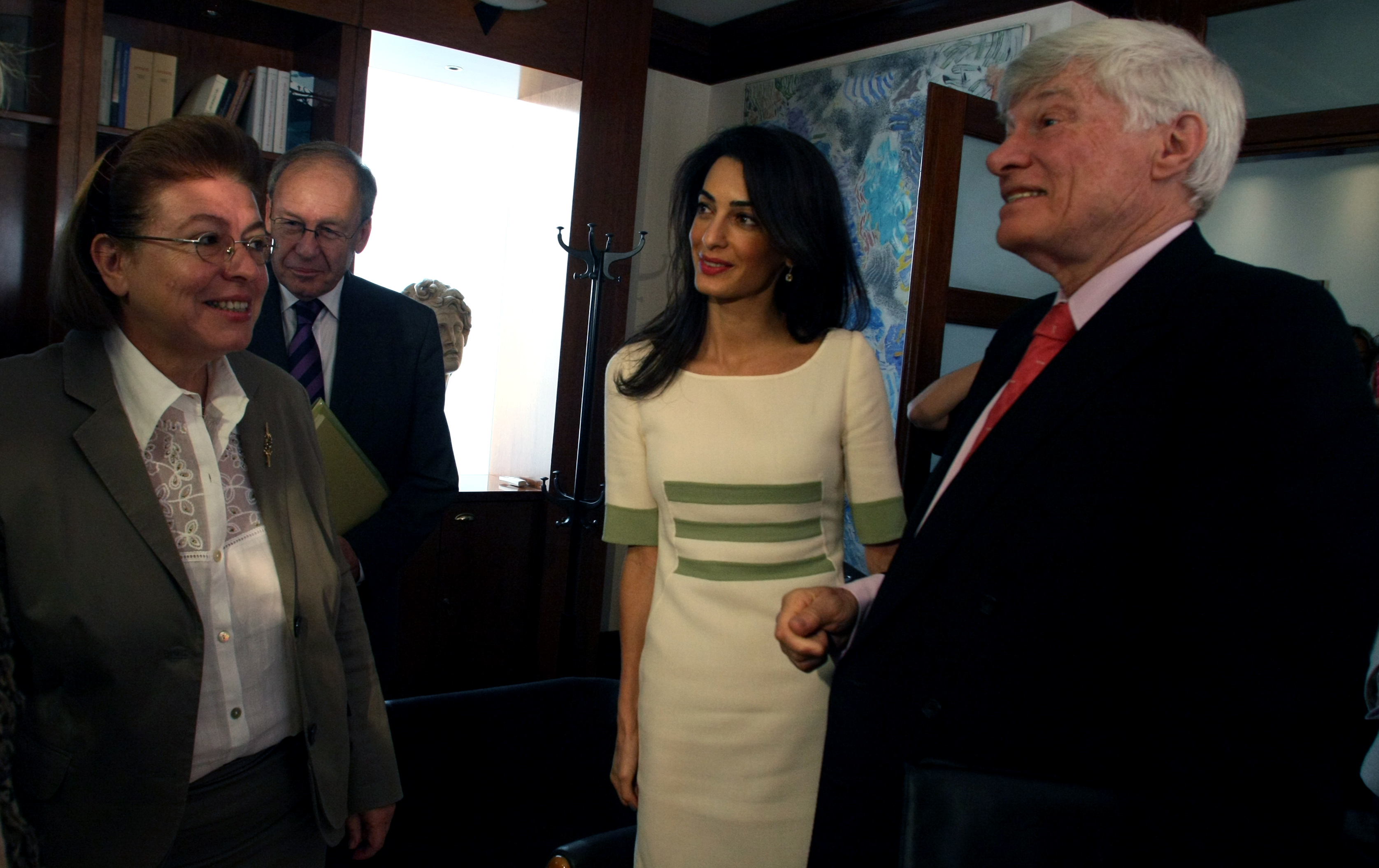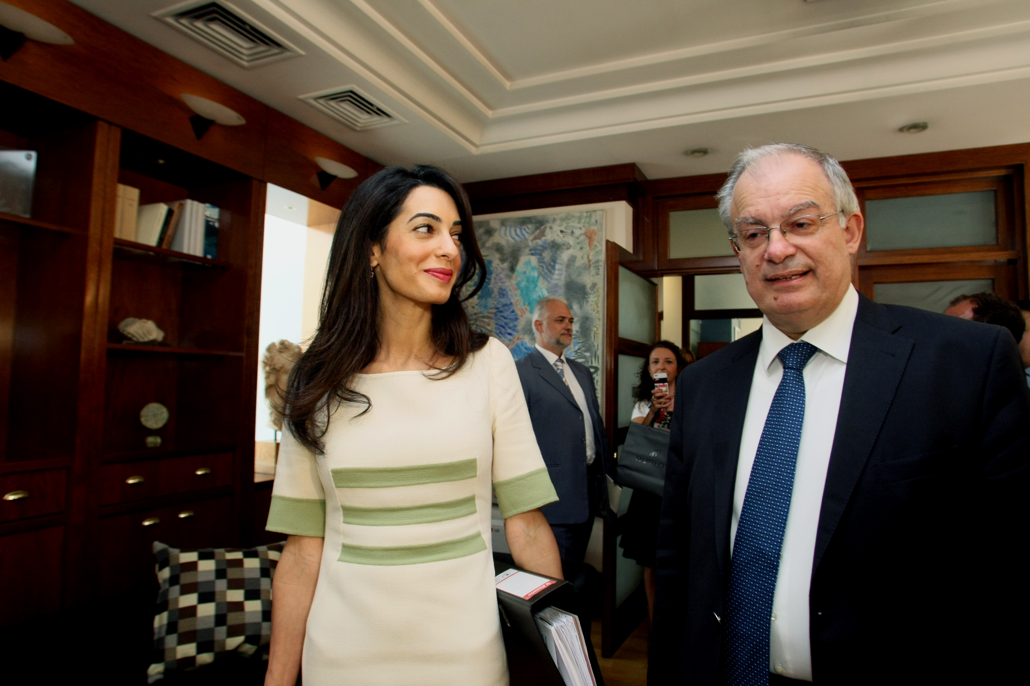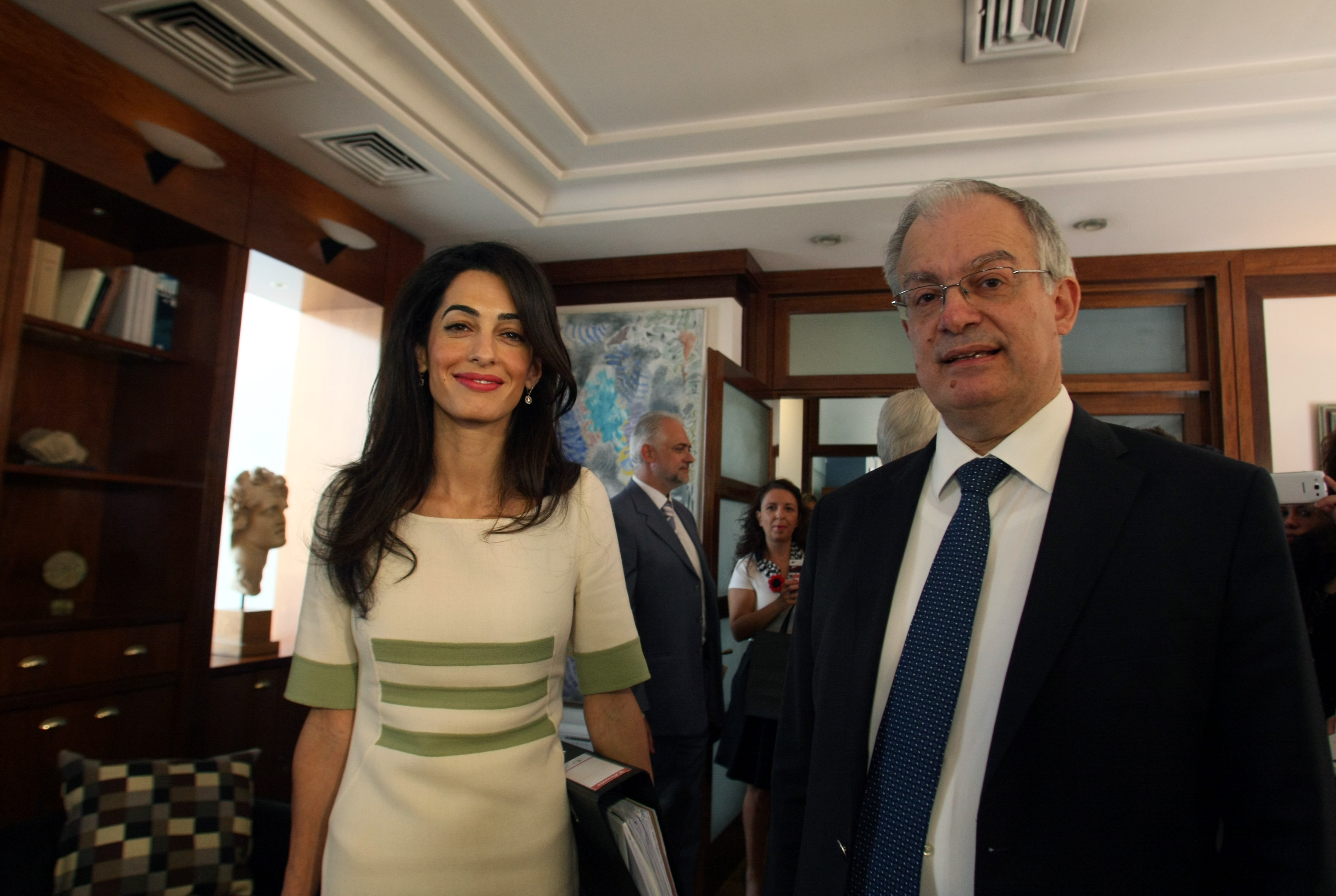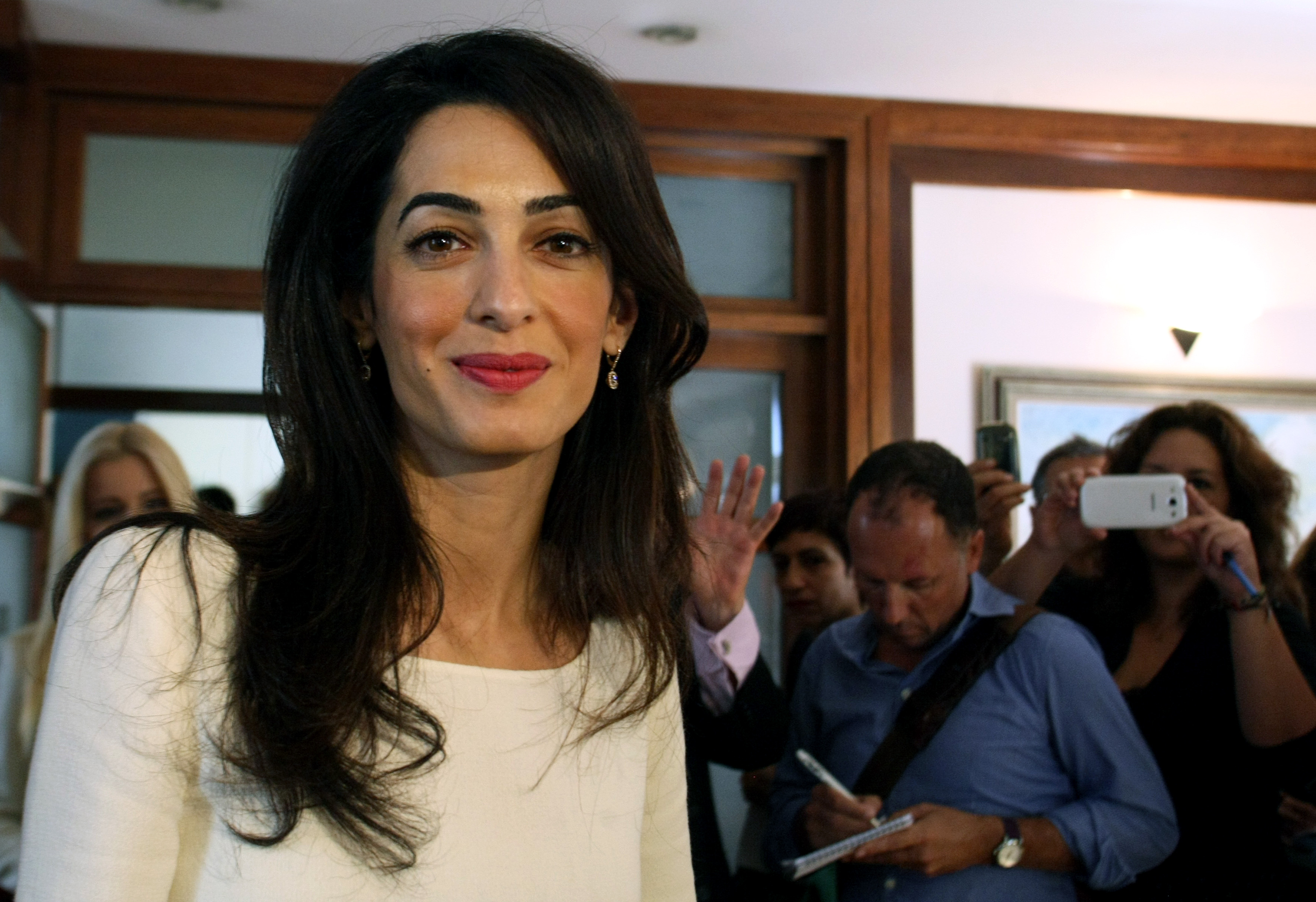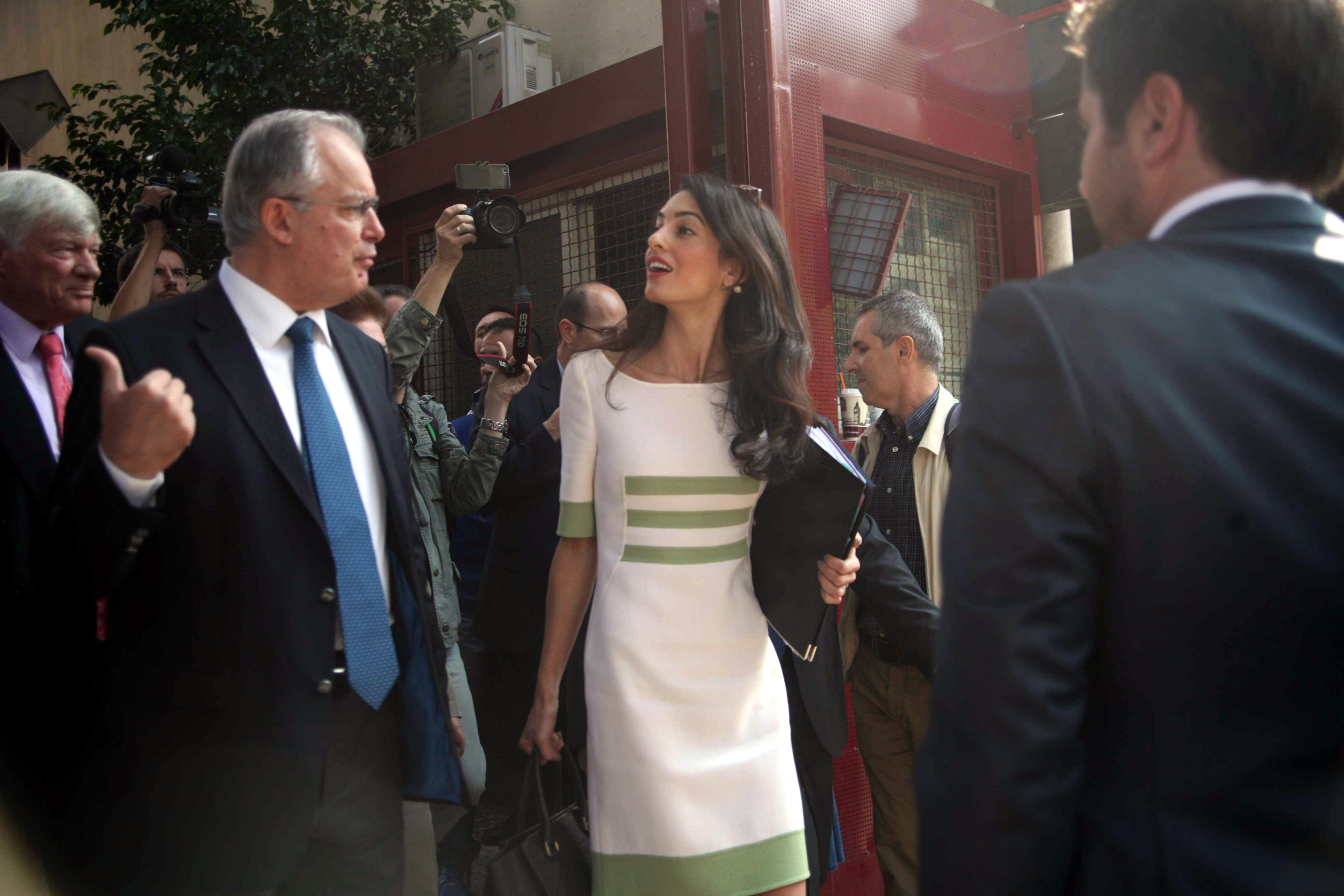 Η Αμάλ Αλαμουντίν έφτασε στη χώρα μας το απόγευμα της Δευτέρας και μένει σε σουίτα στη Μεγάλη Βρετανία. Είναι εκείνη που έχει συγκεντρώσει τα φλας της δημοσιότητας και όχι άδικα.