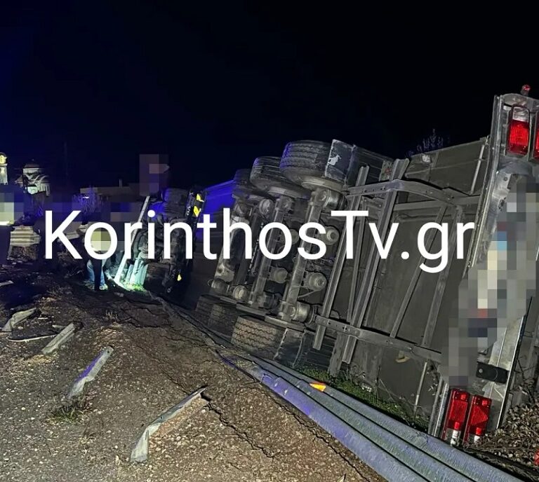 Για άγνωστη αιτία η νταλίκα εξετράπη της πορείας στην Κορίνθου – Πατρών και ανετράπη ενώ ευτυχώς ο οδηγός της νταλίκας, είναι καλά στην υγεία του.
