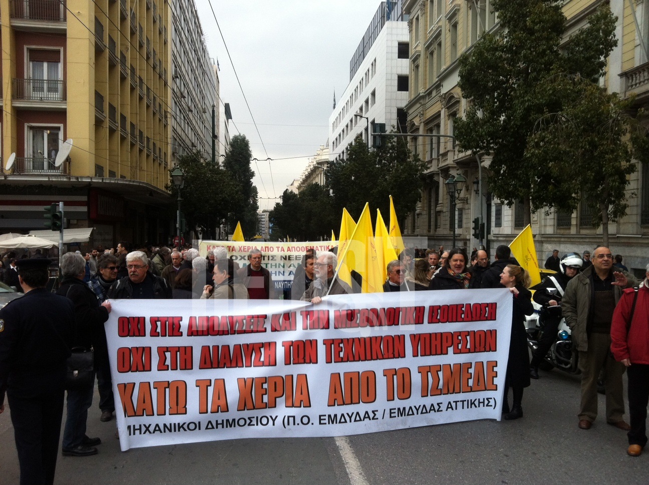 Επίσης αντιδρούν στην επιχειρούμενη ισοπέδωση των Διπλωματούχων Μηχανικών και των επιστημόνων, και στην ισοπέδωση των Διπλωματούχων Μηχανικών με το βαθμολόγιο, το οποίο δεν αναγνωρίζει καν τα πέντε χρόνια σπουδών και το μισθολόγιο πείνας. Οι διπλωματούχοι μηχανικοί διαμαρτύρονται για τη διαχειριστική ανικανότητα στην υλοποίηση των έργων του ΕΣΠΑ και για την έλλειψη προγραμματισμού νέων δημοσιών έργων”.