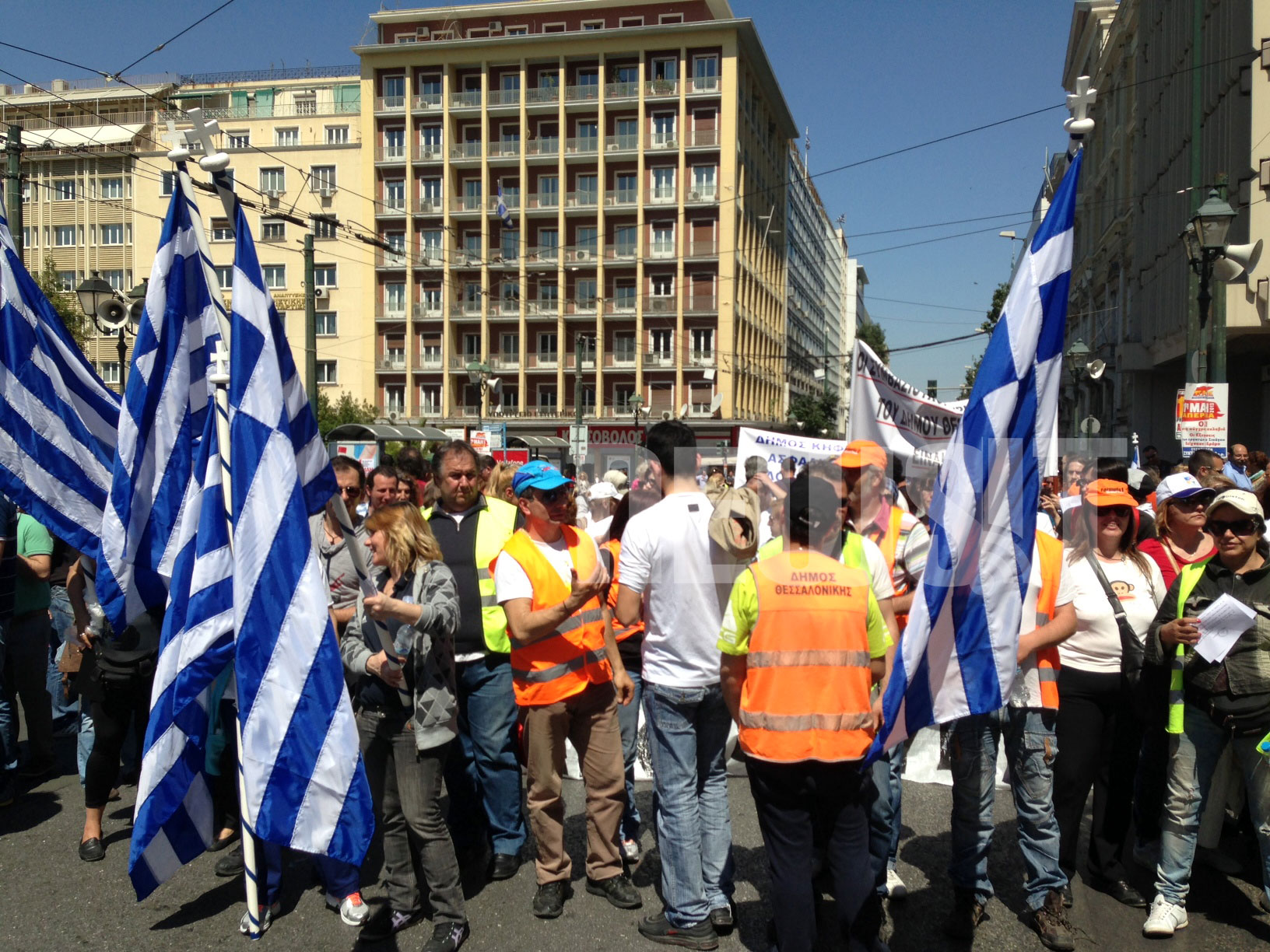 Η πορεία των εργαζομένων ξεκίνησε από την πλατεία Κλαυθμώνος και έφτασε αρχικά στο Σύνταγμα, έξω από το υπουργείο Οικονομικών.