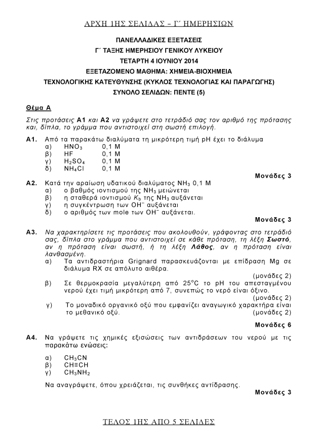 Δείτε τα θέματα Χημείας – Βιοχημείας Τεχνολογικής Κατεύθυνσης στα οποία εξετάζονται οι μαθητές.