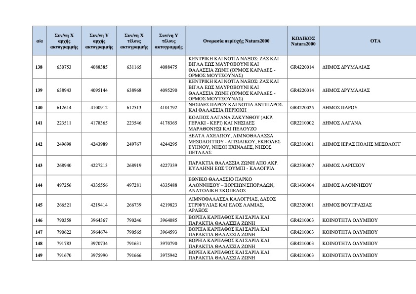 Με τη νέα ΚΥΑ, αυξάνονται οι αιγιαλοί και παραλίες εντός περιοχών που συμπεριλαμβάνονται στον Εθνικό Κατάλογο Περιοχών του Ευρωπαϊκού Οικολογικού Δικτύου Natura 2000 και στις οποίες απαγορεύεται πλέον η παραχώρηση απλής χρήσης, καθώς και οποιαδήποτε άλλη δράση, που μπορεί να θέσει σε κίνδυνο τη μορφολογία τους και την ακεραιότητά τους ως προς τις οικολογικές τους λειτουργίες.