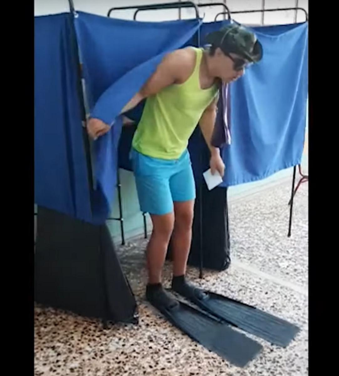 Αν το δίλημμα αυτών των εκλογών ήταν “παραλία ή κάλπη”, για τον “Αγάπη Μόνο” το δίλημμα αυτό αποδείχτηκε μάλλον πλαστό. Η κάμερα απαθανάτισε τον Τάσο Ποτσέπη να ασκεί το εκλογικό του δικαίωμα φορώντας βατραχοπέδιλα!