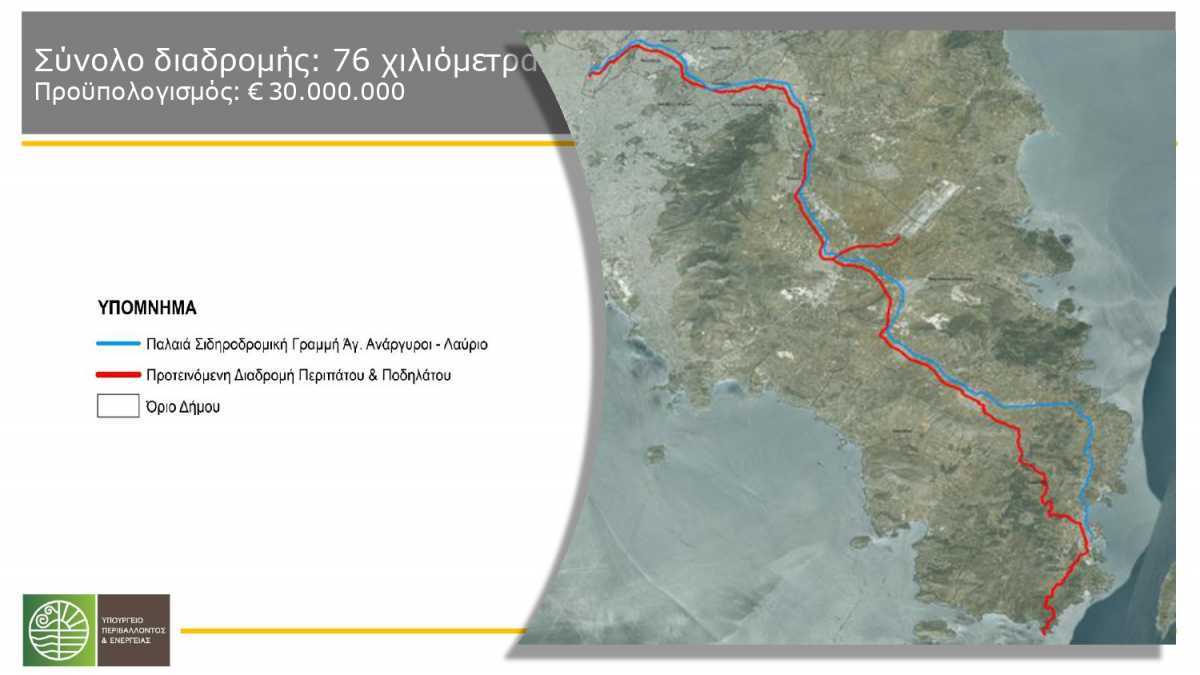 Το έργο θα έχει συνολική έκταση περίπου 70 χλμ. Το αστικό κομμάτι θα αποκτήσει ενιαίο ποδηλατόδρομο και πεζόδρομο, ενώ για το υπόλοιπο, από τη Βουλιαγμένη ως το Σούνιο, μήκους 48 χλμ., προβλέπεται αναμόρφωση της διαδρομής με ενιαία ανάπλαση.