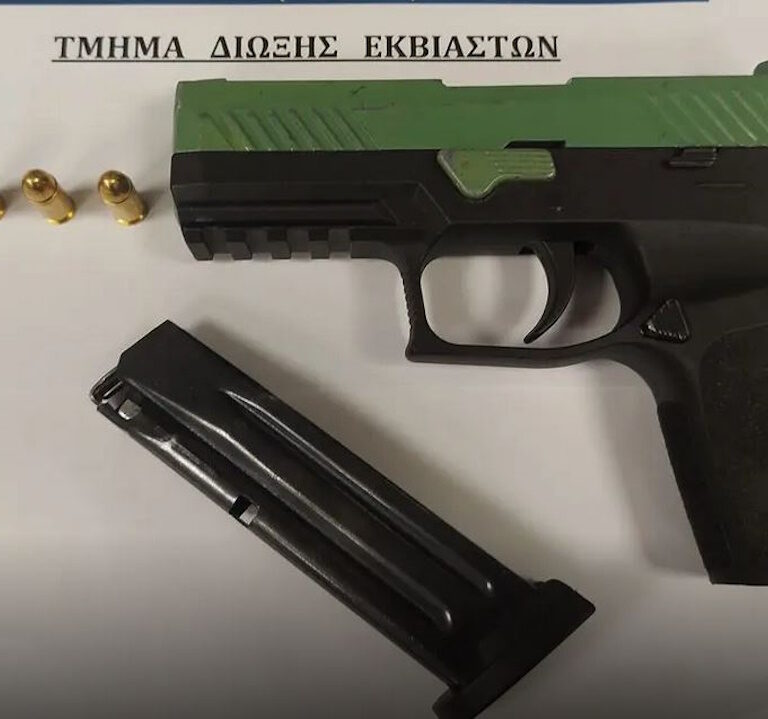 Ειδικότερα, αστυνομικοί του Τμήματος Δίωξης Εκβιαστών, εντόπισαν τον κατηγορούμενο σε καταστήματα υγειονομικού ενδιαφέροντος, σε περιοχή της Αττικής και σε έλεγχο που πραγματοποιήθηκε, βρέθηκε να κατέχει μέσα σε τσαντάκι ένα πιστόλι με γεμιστήρα που περιείχε πέντε φυσίγγια, ενώ επιπλέον κατασχέθηκαν και δύο κινητά τηλέφωνα.