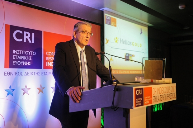 Διευρύνοντας την λίστα των διακρίσεων και πιστοποιήσεων για τις πρακτικές της σε σχέση με την κοινωνία και το περιβάλλον, η Ελληνικός Χρυσός τιμήθηκε δια του Αντιπροέδρου και Διευθύνοντος Συμβούλου της, κ. Δημήτρη Δημητριάδη με το CRI Gold award, για τις επιδόσεις της, τις πολιτικές της και τις επιλογές της σε επίπεδο Εταιρικής Κοινωνικής Ευθύνης το 2016: