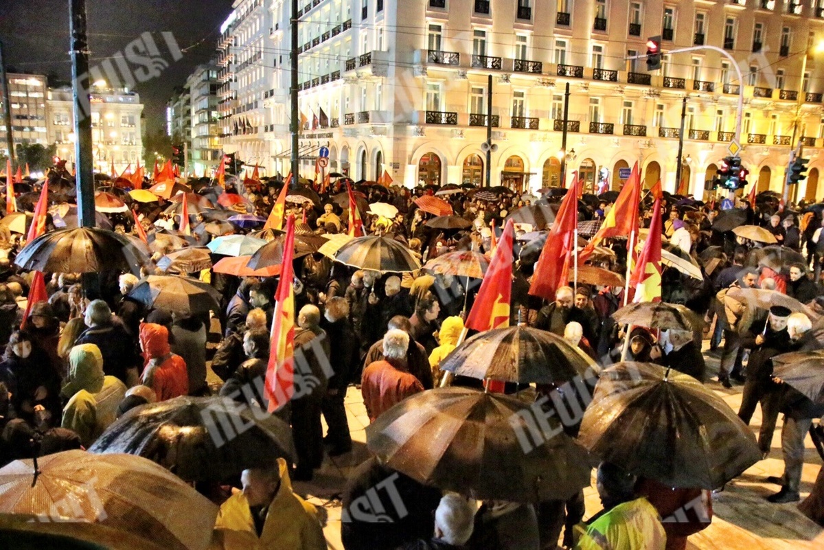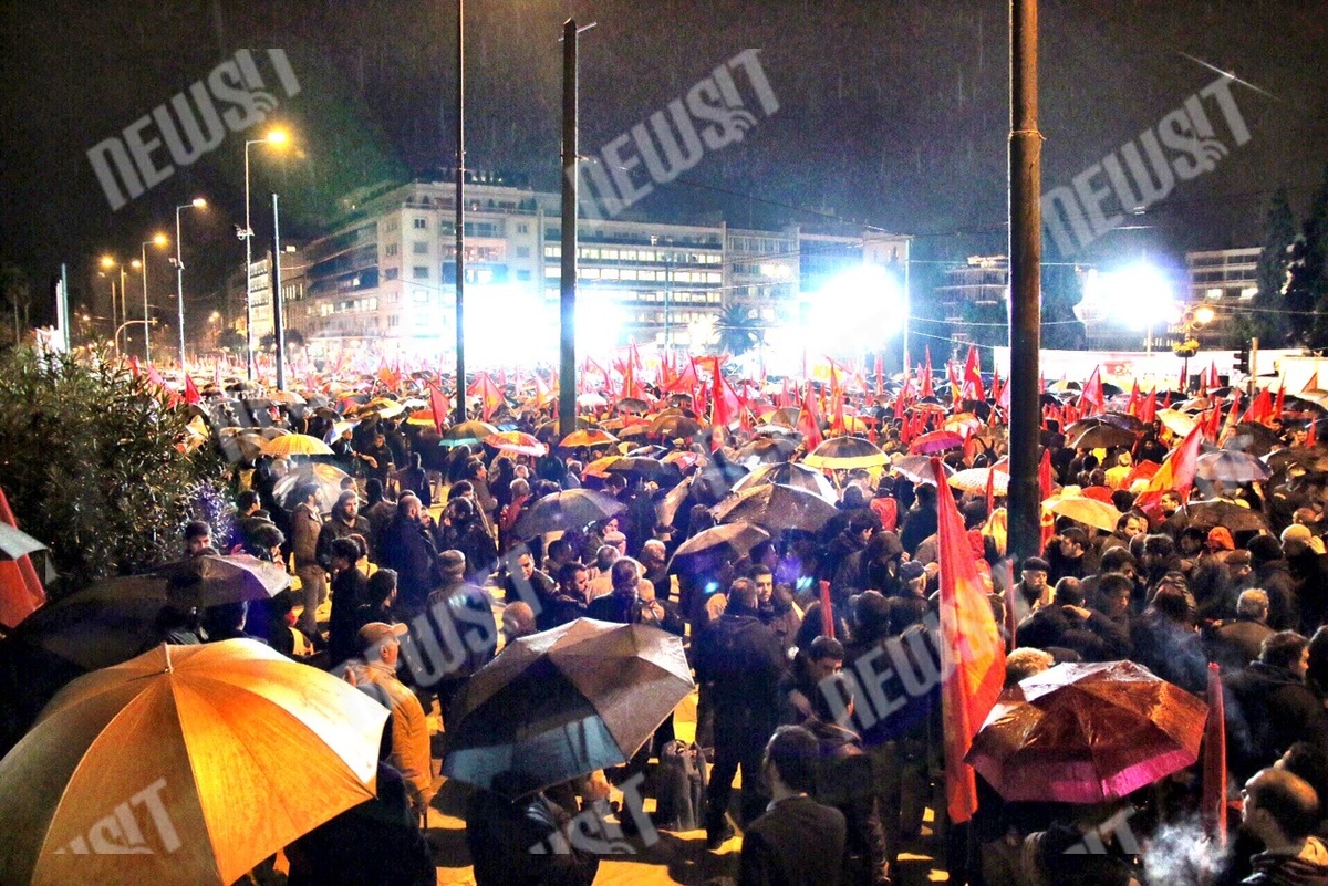 Ο ΓΓ της ΚΕ του ΚΚΕ, Δημήτρης Κουτσούμπας σε αποψινή του ομιλία στο συλλαλητήριο του κόμματος στην Πλατεία Συντάγματος είπε ότι όσοι ανταποκρίθηκαν με την φυσική τους παρουσία στο προσκλητήριο του ΚΚΕ, αλλά και όσοι είναι παρόντες «με το νου και την καρδιά τους από όλη την χώρα και από τα πέρατα της οικουμένης» ζητούν την άμεση κατάργηση όλων των μνημονίων και των εφαρμοστικών νόμων τους, δεν δείχνουν καμία ανοχή στη νέα συμφωνία κυβέρνησης και ΕΕ για επέκταση του μνημονίου και τάσσονται υπέρ της ρήξης με τους δυνάστες του λαού, «την ΕΕ, το κεφάλαιο και την εξουσία τους».