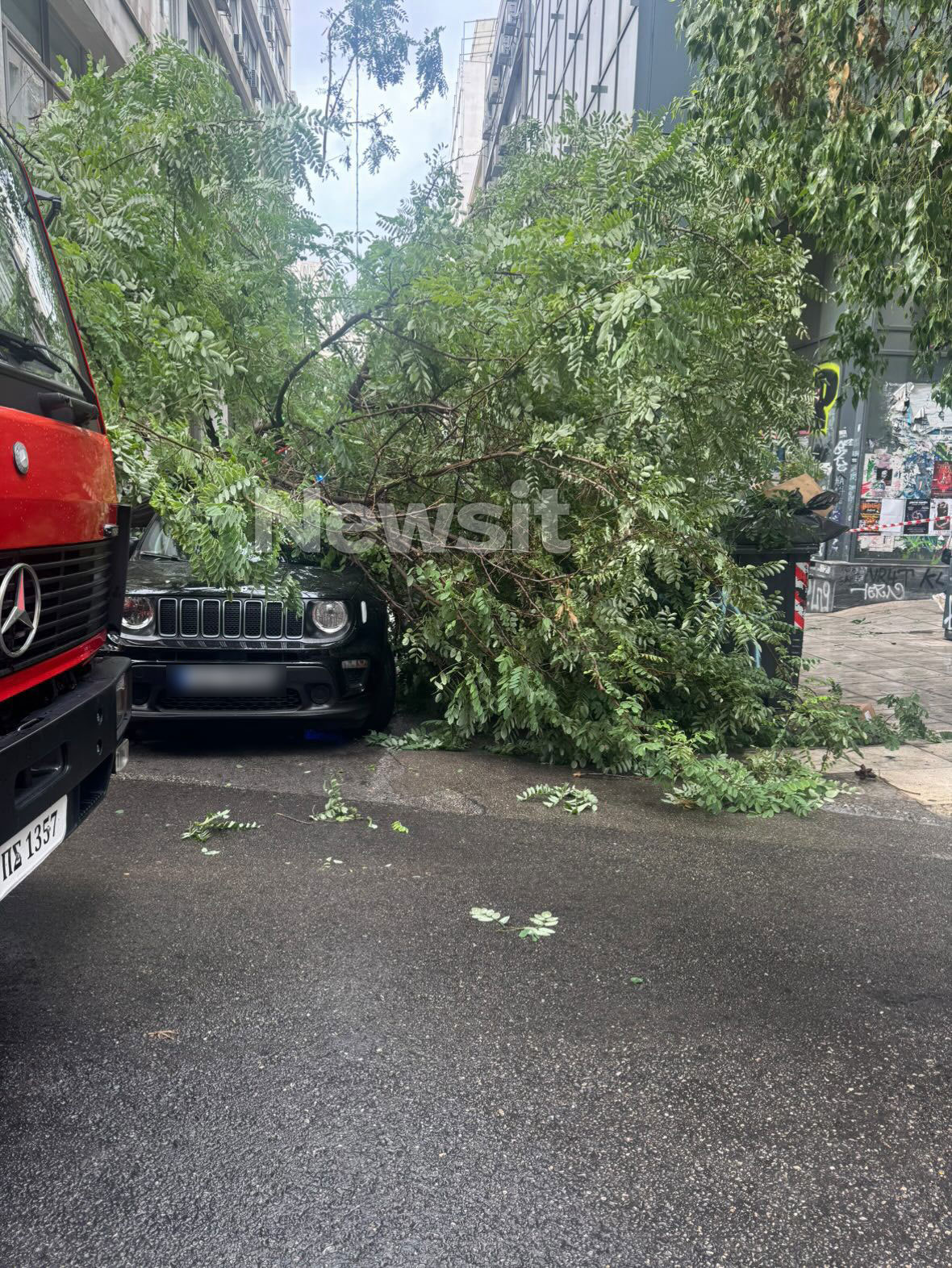 Δέντρο έπεσε απο την κακοκαιρία στην Εμμανουήλ Μπενάκη – Ένας ελαφρά τραυματίας