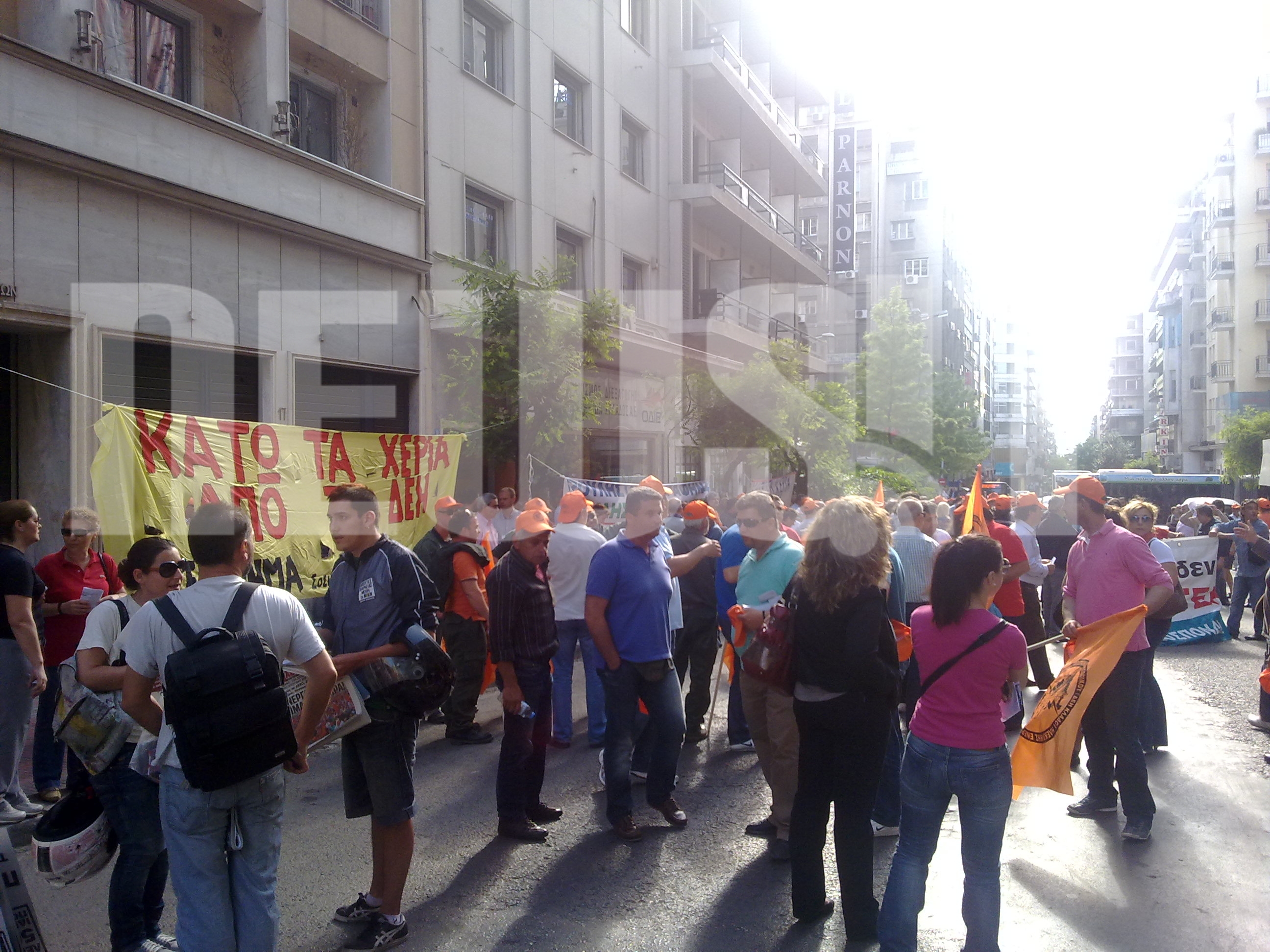 Πορεία προς το υπουργείο Οικονομικών πραγματοποίησαν περίπου 2500 εργαζόμενοι της ΓΕΝΟΠ ΔΕΗ για να διαμαρτυρηθούν για την πώληση ποσοστού της ΔΕΗ.