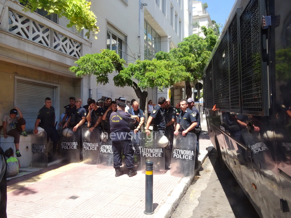 Αντιπροσωπεία των προσφύγων μπήκε τελικά στην πρεσβεία για να επιδώσει ψήφισμα διαμαρτυρίας.