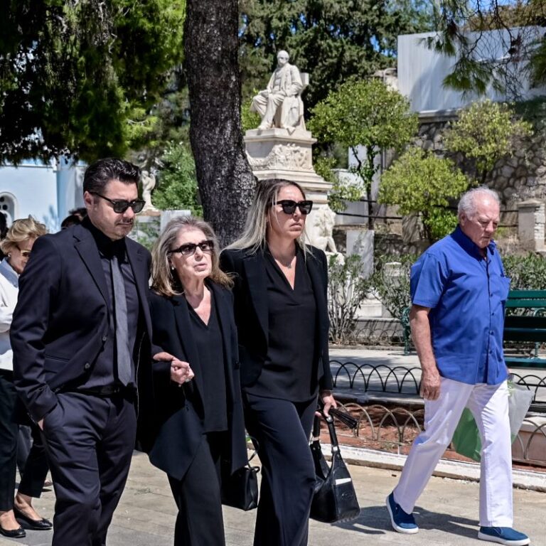 Εμφανώς συγκινημένοι η σύζυγος του Δημήτρη Κωνσταντάρα, Βίκυ Βουρλάκη και τα δύο του παιδιά, Λάμπρος και Παυλίνα έφτασαν στο Α΄Νεκροταφείο για την κηδεία του πολυαγαπημένου τους που τα τελευταία χρόνια αντιμετώπιζε σοβαρά προβλήματα υγείας.