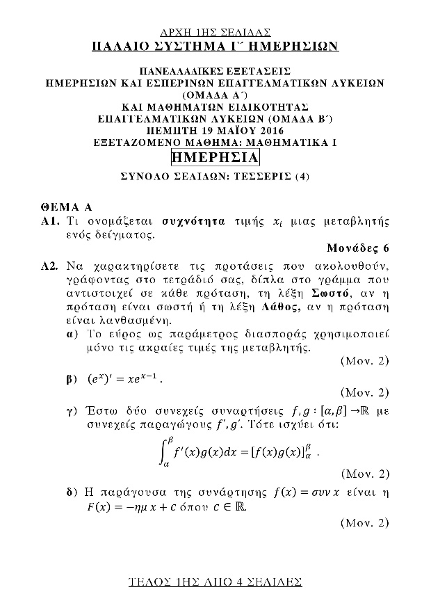 Δείτε τα θέματα των Μαθηματικών Ι.