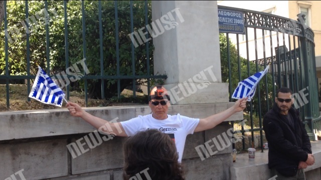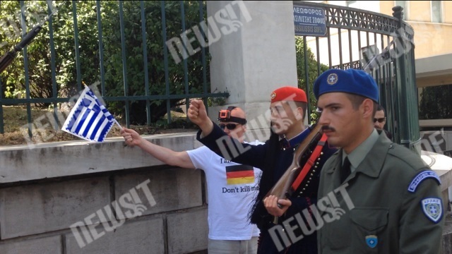 Πάντως κανείς από τους πολιτες δεν ασχολήθηκε μαζί του, προς μεγάλη του αποήτευση υποθέτουμε. Περισσοτερο κοιτούσαν τους άνδρες της Προεδρικής Φρουράς που πάντοτε κλέβουν τις εντυπώσεις παρά τον ακτιβιστή.
