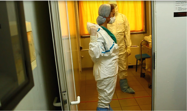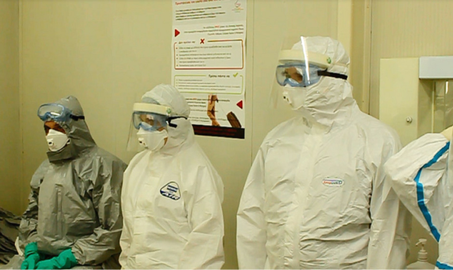 Διακρίνονται, επίσης, οι μέθοδοι προστασίας όσων εμπλέκονται στη νοσηλεία. Από τη διαδικασία απολύμανσης έξω από τον χώρο καραντίνας για τους διασώστες και τα ατομικά μέτρα προστασίας υγειονομικού προσωπικού του ΕΚΑΒ, έως τα ατομικά μέτρα προστασίας του υγειονομικού προσωπικού, όπως η διπλή προστασία προσώπου με μάσκα και φίλτρο αναπνοής.