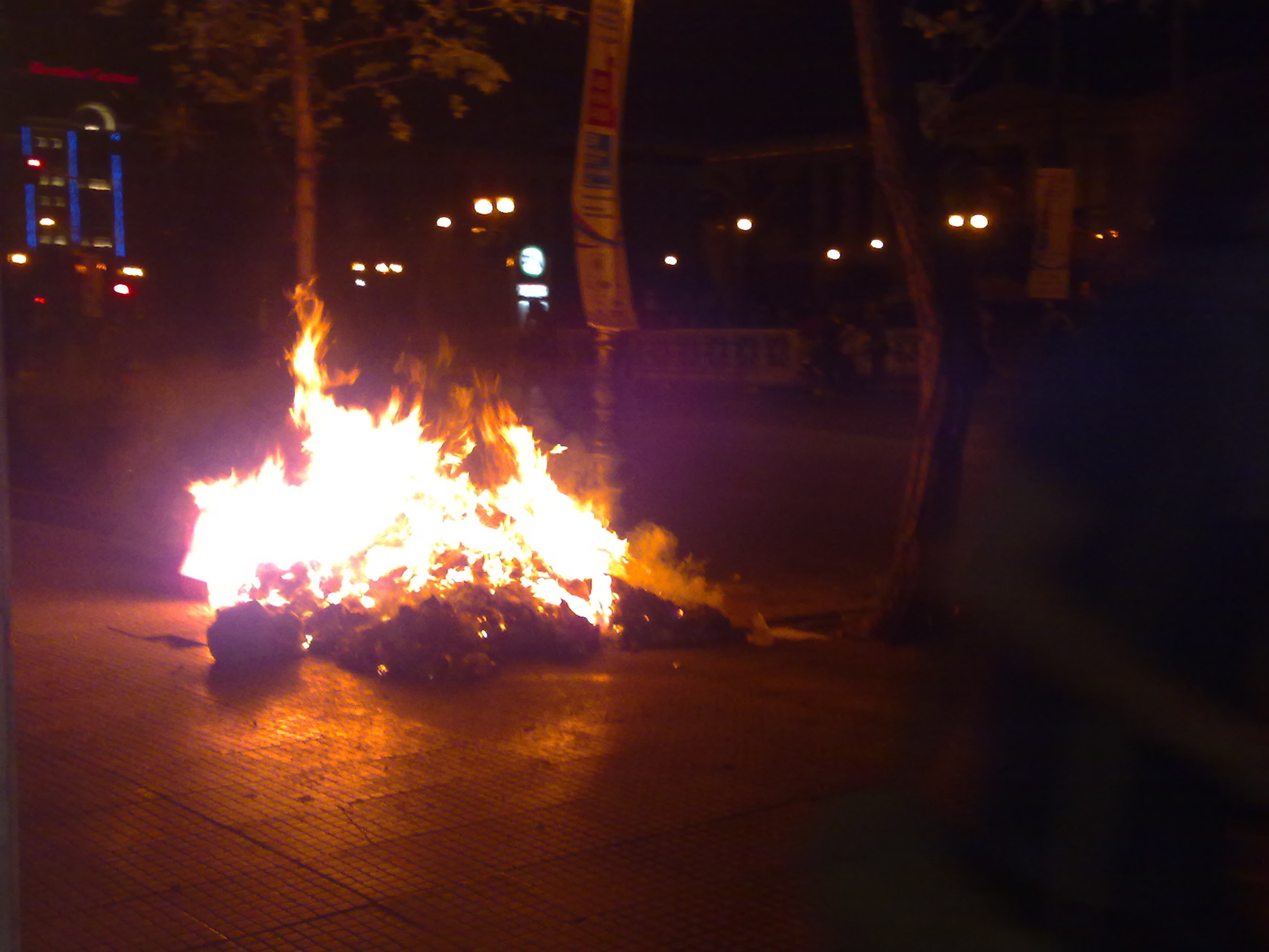 Κάποιοι απο αυτούς έβαλαν φωτιές σε κάδους απορριμμάτων στην Πανεπιστημίου.