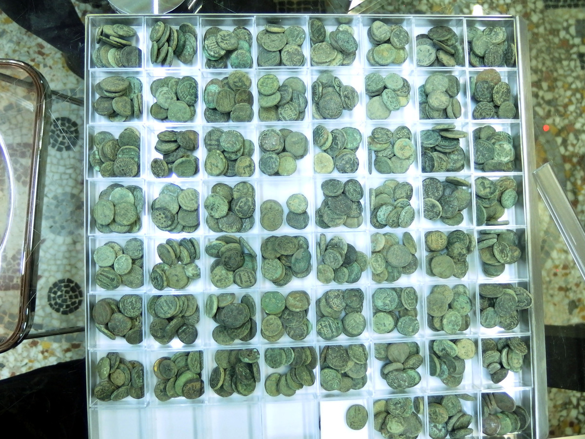 Επιπλέον, ανάμεσά τους εντοπίστηκαν τέσσερα αργυρά δηνάρια 2ου αι. μ.Χ. και δεκαπέντε ρωμαϊκοί αντωνινιανοί από κράμα 3ου αι. μ.Χ. Αναγνωρίστηκαν, τέλος, ιδιαίτερες κοπές νομισματοκοπείου Θεσσαλονίκης πρώιμης βυζαντινής περιόδου (16νούμμια, 8νούμμια και ένα δυνούμμιον) και χάλκινο παλαιολόγειο torneze του Ιωάννη Ε΄ Παλαιολόγου, 2ου μισού 14ου αι.