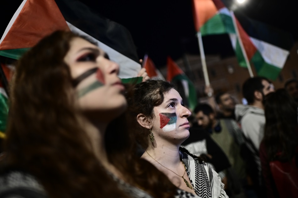 Πολλοί διαδηλωτές παραμένουν στην περιοχή φωνάζοντας συνθήματα με κυρίαρχο το «Λευτεριά στην Παλαιστίνη».