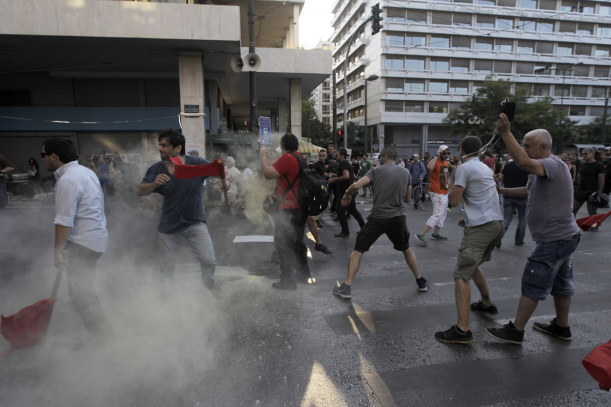 Αμέσως η ένταση ανέβηκε και υπήρξαν επεισόδια ανάμεσα στους αντιεξουσιαστές και τους αστυνομικούς στην οδό Φιλελλήνων, με τους αστυνομικούς να κάνουν περιορισμένη χρήση χημικών.