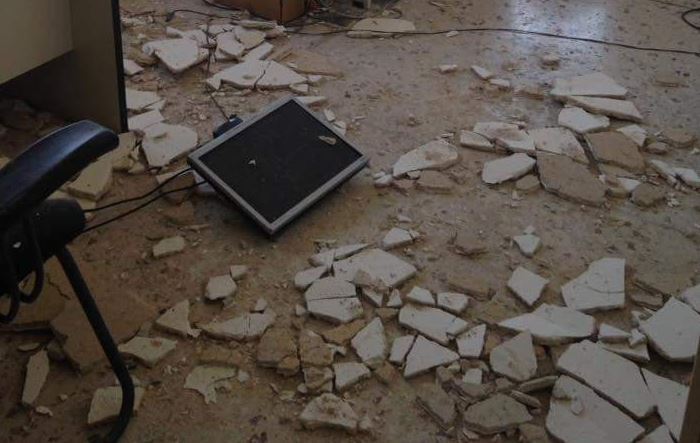 Όπως μπορείτε να δείτε στις εικόνες που “ανέβηκαν” στα social media το ταβάνι κατέρρευσε πάνω στα γραφεία των εργαζομένων, οι οποίοι για καλή τους τύχη δεν ήταν εκείνη τη στιγμή μέσα.