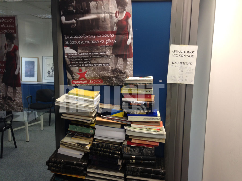 “Έχτισαν” με βιβλία την είσοδο του γραφείου του Αρβανιτόπουλου