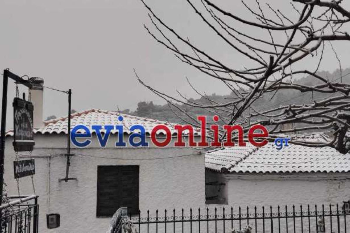 Χιονόστρωση σημειώθηκε στο χωριό Στρόπωνες Ευβοίας, ενώ την ίδια ώρα χιονίζει και στα χωριό Καθενούς.