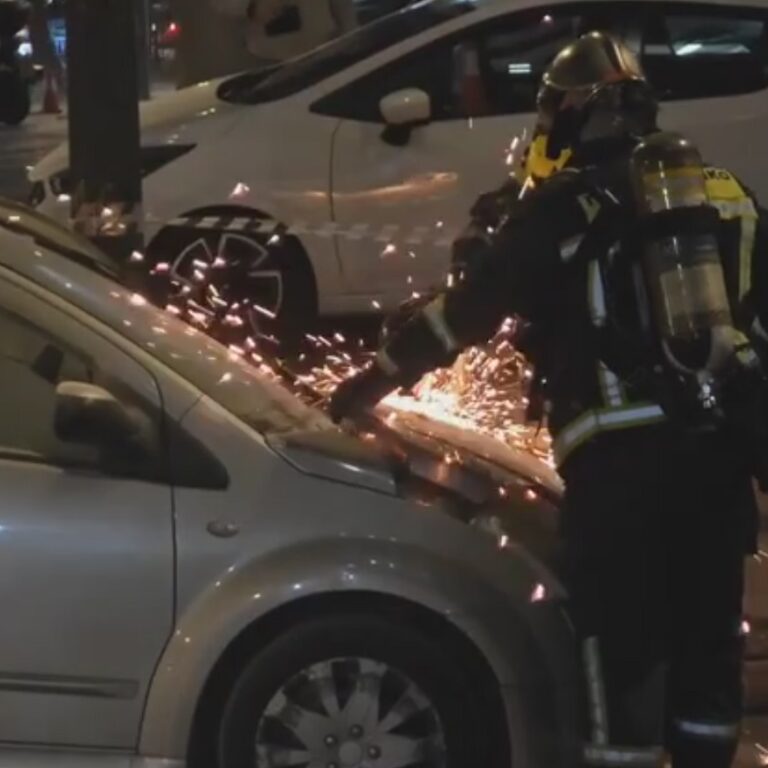 Οι πυροσβέστες άνοιξαν το καπό με τροχό και αφαίρεσαν τη μπαταρία για να αποτραπεί τυχόν έκρηξη.