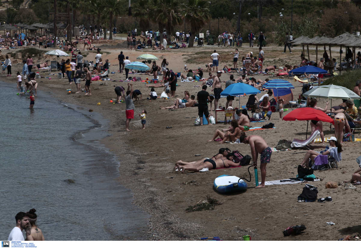 Ζεστή ανοιξιάτικη Κυριακή και εκατοντάδες άνθρωποι βρέθηκαν στις παραλίες της Αττικής για να απολαύσουν το μπάνιο και την ηλιοθεραπεία τους.
