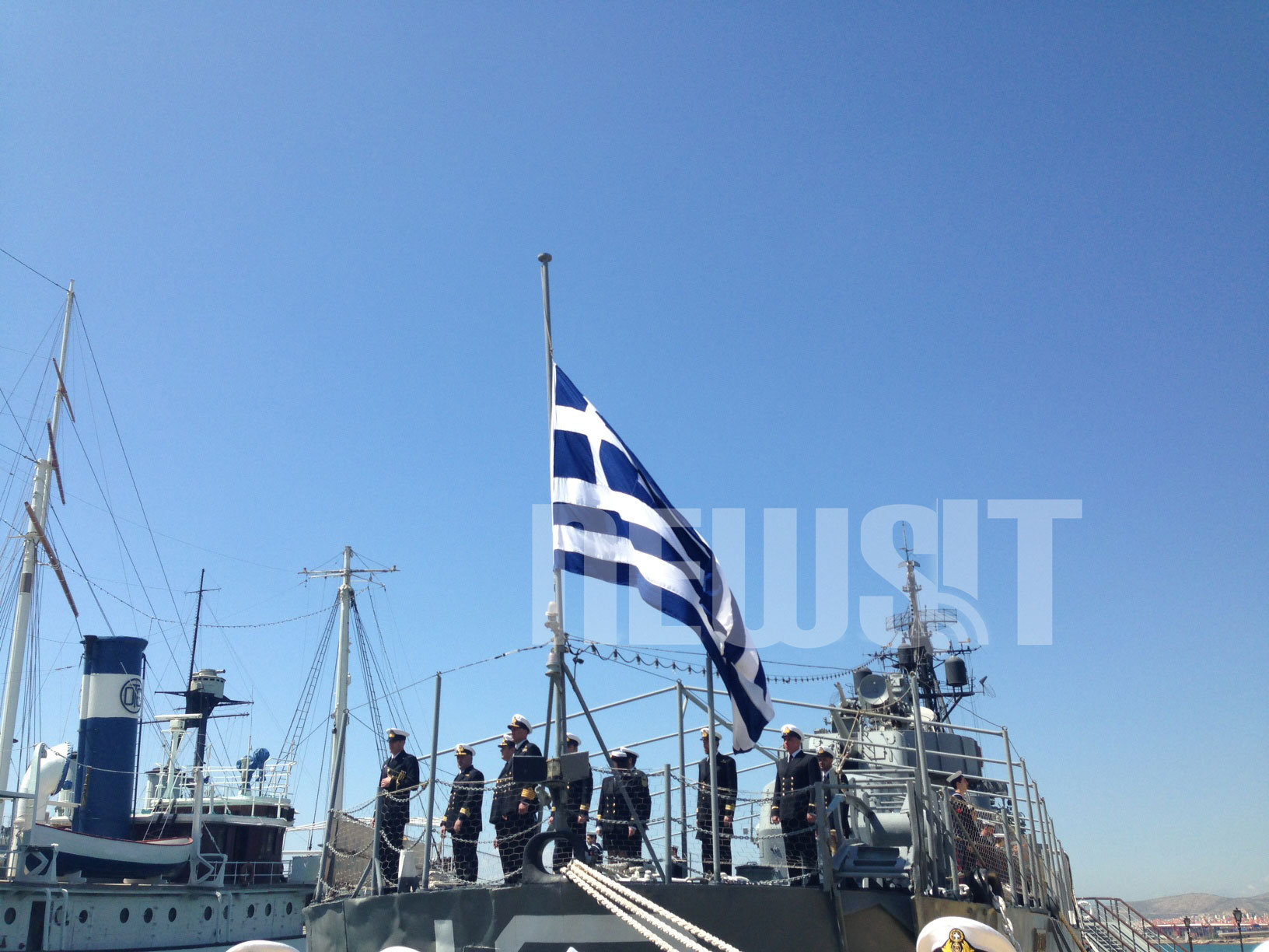 Η σημαία του Βέλους μεσίστια, αποχαιρετά κι εκείνη τον κυβερνήτη του θρυλικού αντιτορπιλικού.