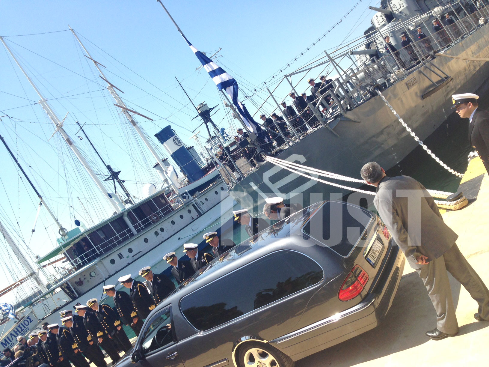 Από το "σπίτι" του, το αντιτορπιλικό Βέλος, εκεί απ' όπου ξεκίνησε το Κίνημα του Ναυτικού κατά της χούντας, πέρασε για τελευταία φορά ο Νίκος Παππάς πριν η σορός του μεταφερθεί στην Κύμη όπου θα ταφεί.