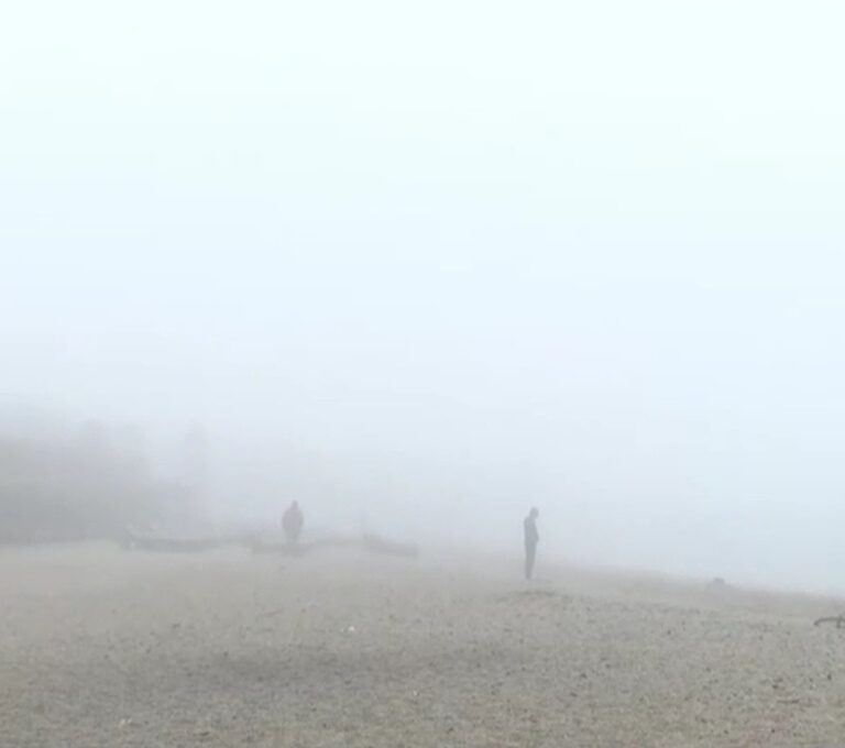 Αποπνικτική είναι η ατμόσφαιρα και στον Άλιμο, με την ομίχλη να κρύβει τις παραλίες και να δυσκολεύει τους χειμερινούς κολυμβητές.