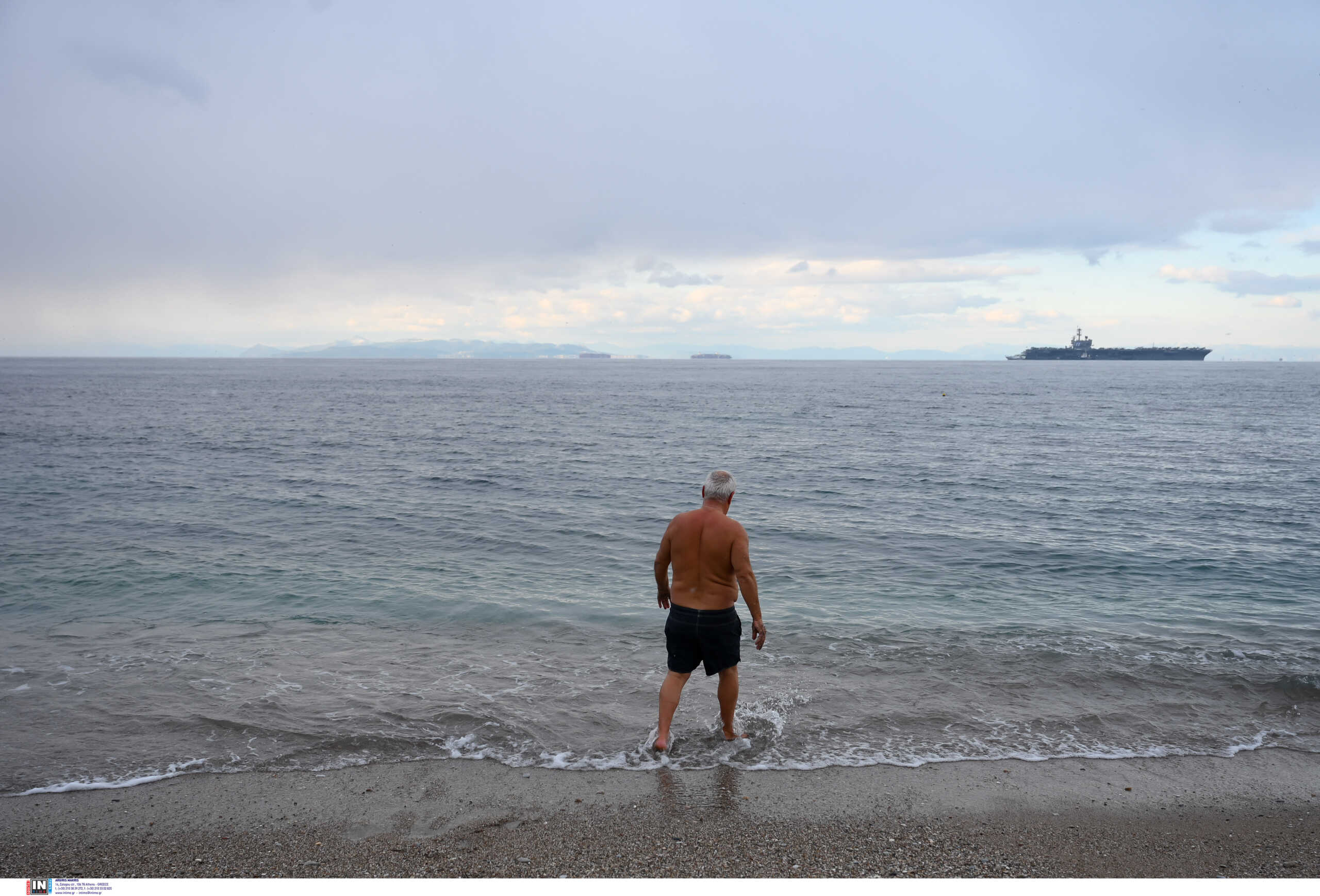 Στην παραλία του Αλίμου η κακοκαιρία δεν φόβισε τους χειμερινούς κολυμβητές που πήγαν στην θάλασσα και μάλιστα βούτηξαν, φορώντας το μαγιό τους.