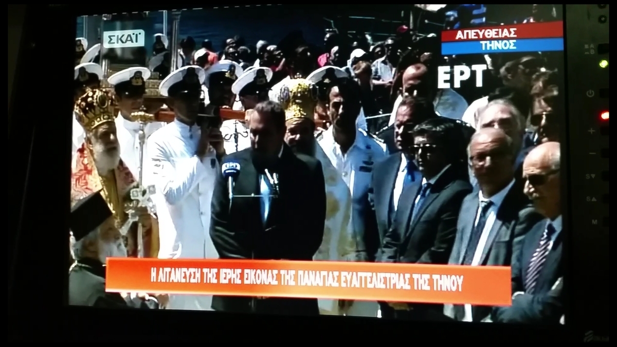 “Η τηλεόραση του ΣΚΑΪ προχώρησε σε μια πρωτοφανή για τα τηλεοπτικά ήθη κλοπή της εικόνας της ΕΡΤ από την τηλεοπτική κάλυψη της Θείας Λειτουργίας στην Ευαγγελίστρια της Τήνου, τη λιτάνευση της θαυματουργής εικόνας και τις εκδηλώσεις για τον εορτασμό του Δεκαπενταύγουστου στο νησί.