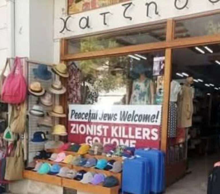 Η αφίσα στη βιτρίνα κεντρικού εμπορικού καταστήματος στον Άγιο Νικόλαο στο Λασίθι, με σύνθημα «Ισραηλινέ που είσαι φιλειρηνικός, είσαι καλοδεχούμενος… Σιωνιστή, γύρνα πίσω στην πατρίδα σου», ενόχλησε τον Ισραηλινό που είχε αποβιβαστεί από το κρουαζιερόπλοιο «Crown Iris».