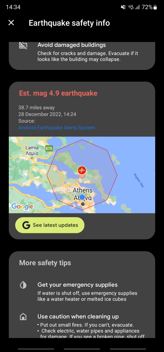 Σεισμός ταρακούνησε την Αττική, στις 2:24 το μεσημέρι της Τετάρτης (28.12.2022). Το μέγεθος της σεισμικής δόνησης είναι 4,9 Ρίχτερ σύμφωνα με το Γεωδυναμικό. Το επίκεντρο βρίσκεται στην Εύβοια.