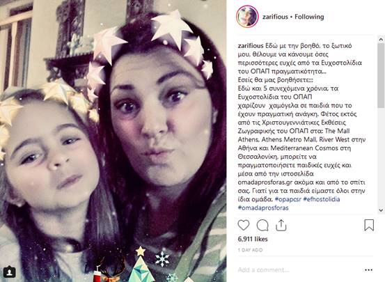 Την ίδια ώρα, συμμετέχοντας στις χριστουγεννιάτικες δοκιμασίες της εφαρμογής «Ομάδα Προσφοράς» συγκεντρώνουν πόντους, οι οποίοι θα μετατραπούν από τον ΟΠΑΠ σε έργα υποδομής στις εγκαταστάσεις «Του Χαμόγελου του Παιδιού», με στόχο τη βελτίωση της ποιότητας ζωής των παιδιών και τη δημιουργία ενός ευχάριστου περιβάλλοντος.