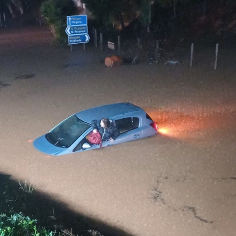 Απίστευτες εικόνες από τους πλημμυρισμένους δρόμους στη Μάνδρα Αττικής