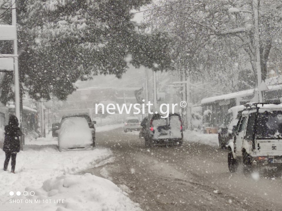 Ασταμάτητο πέφτει το χιόνι στα βόρεια της Αττικής με αποτέλεσμα περιοχές όπως η Δροσιά, η Σταμάτα και η Άνοιξη να έχουν πάνω από 30 εκατοστά χιόνι.