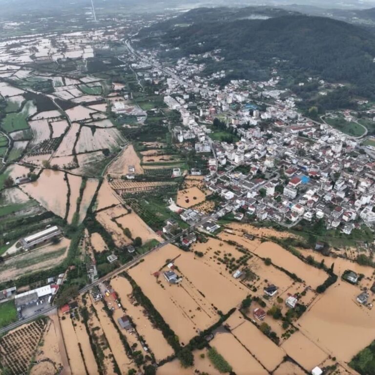 Εικόνες από ψηλά, δείχνουν το μέγεθος της καταστροφής, με τεράστιες εκτάσεις να έχουν μετατραπεί σε μία λίμνη λάσπης προκαλλώντας μεγάλη καταστροφή στις εκτάσεις της περιοχής.
