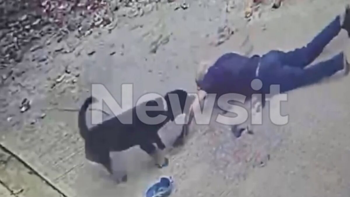 Στο βίντεο, όταν ο ηλικιωμένος άνδρας ανοίγει την πόρτα, το τετράποδο με αστραπιαίες κινήσεις πέφτει πάνω στον ιδιοκτήτη του και χωρίς έλεος τον δαγκώνει σε σημεία του σώματός του.