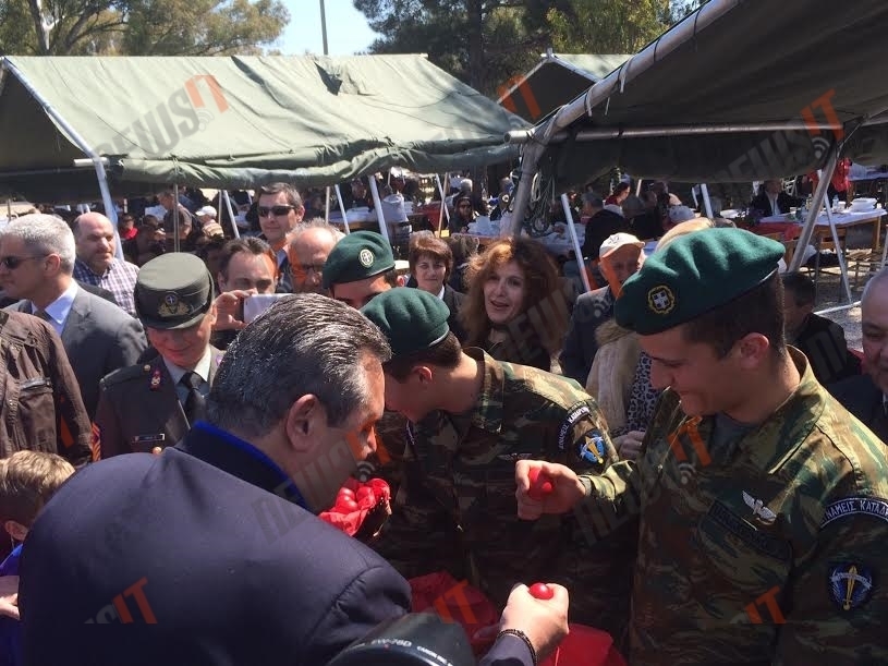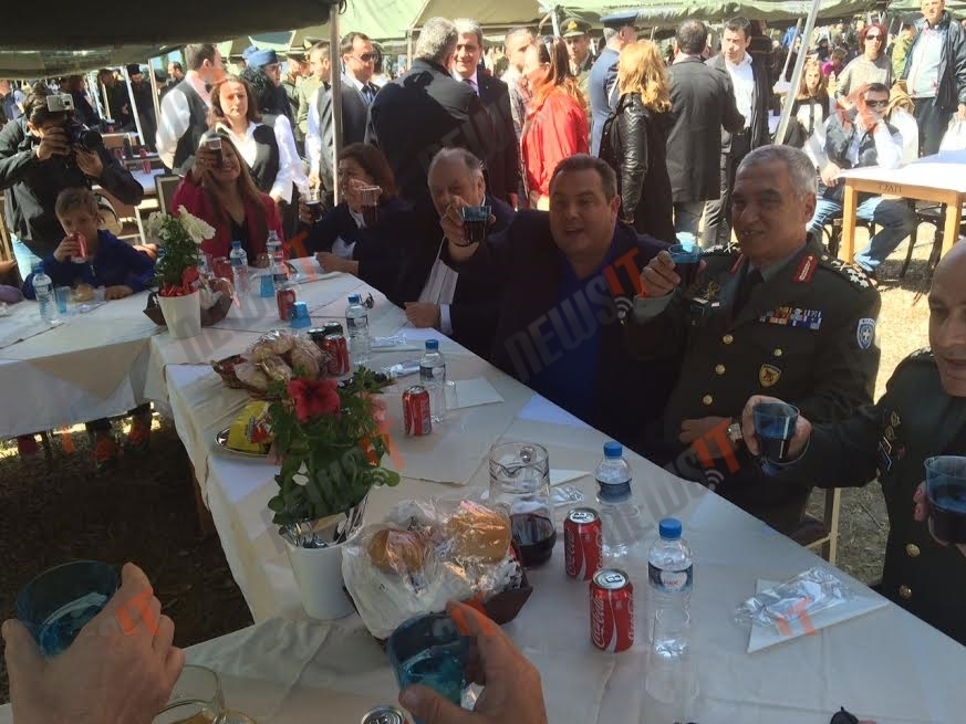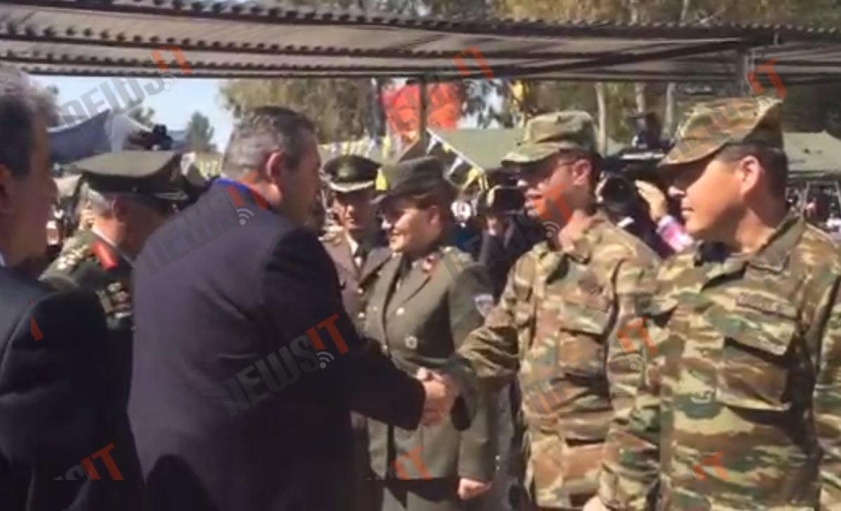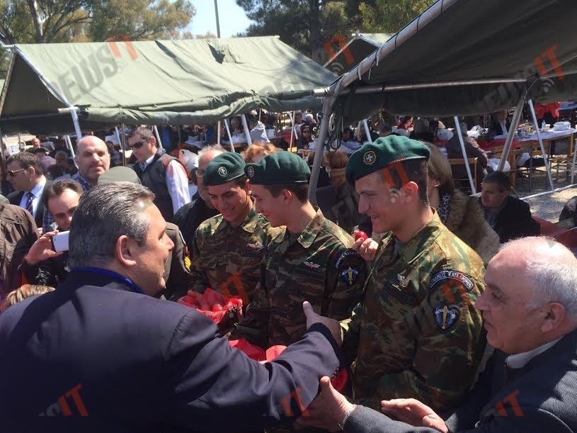 Λίγο μετά τις 12:00 τιο μεσημέρι, όπως ήταν προγραμματισμένο, έφτασε στο άλσος Στρατού στου Γουδή ο υπουργός Εθνικής Άμυνας, Πάνος Καμμένος.
