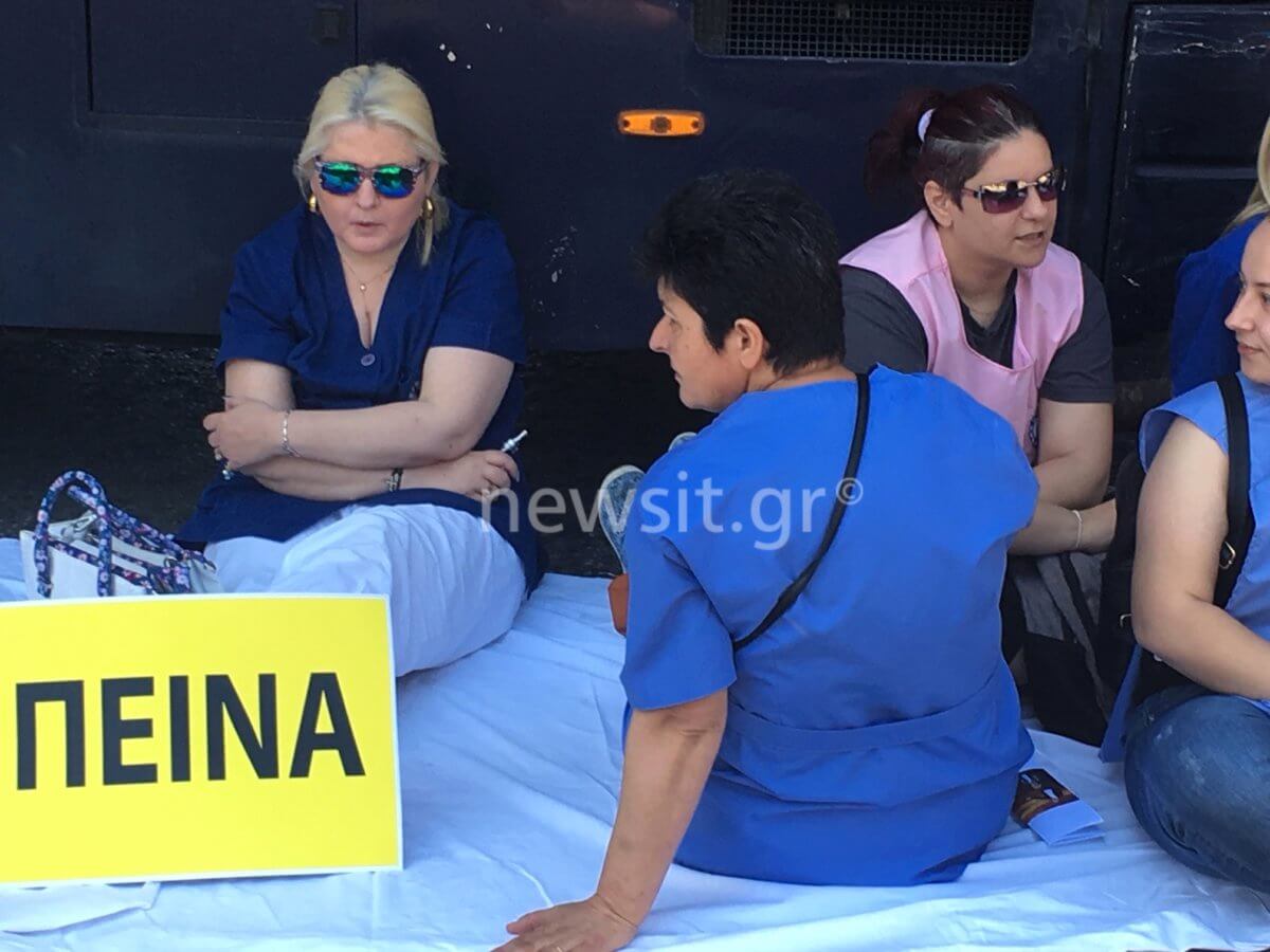 Η συγκέντρωση διαμαρτυρίας, έγινε στην συμβολή των οδών Βασιλίσσης Σοφίας και Ηρώδου Αττικού από την ΠΟΕΔΗΝ και τις καθαρίστριες του Δρομοκαΐτειου. Παντού υπήρχαν κλούβες της αστυνομίας που έκλειναν την πρόσβαση στην Ηρώδου Αττικού. Τα συνθήματα πολλά και κάποια στρέφονταν και κατά του αναπληρωτή υπουργού Υγείας Παύλου Πολάκη.