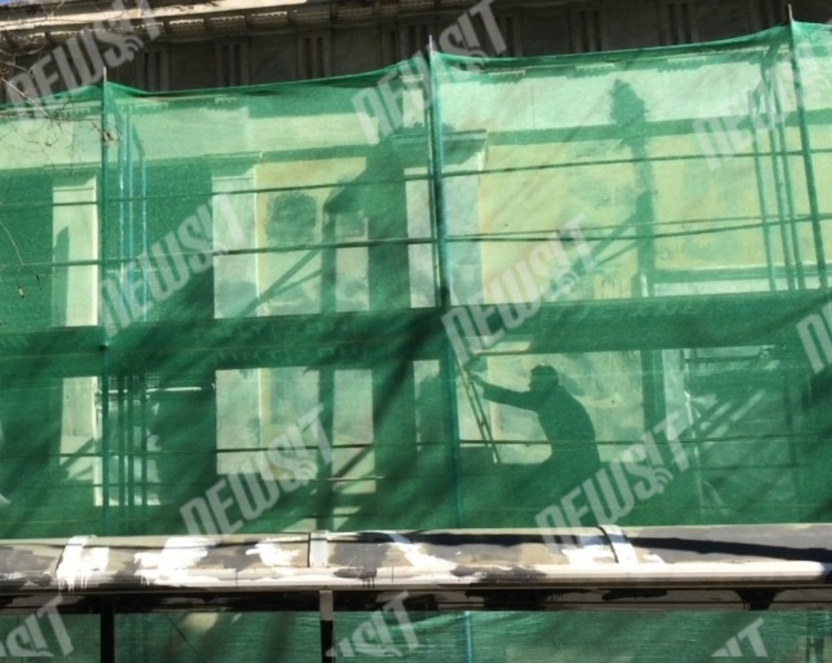 Οι συντηρητές έχουν βάλει το ειδικό πλέγμα περιμετρικά του κτιρίου ενώ έχουν στηθεί και σκαλωσιές που θα επιτρέψουν στα συνεργεία να φτάσουν ακόμη και στα ψηλότερα σημεία του κτιρίου.