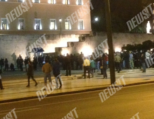 Η συγκέντρωση είχε προγραμματιστεί στις 19.00, στα Προπύλαια.