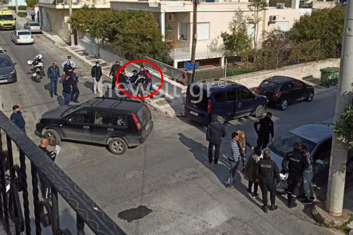 Χειροπέδες πέρασαν άνδρες της ομάδας ΔΙΑΣ στον δράστη των πυροβολισμών μπροστά από ΚΕΠ στο Κορωπί, το πρωί της 16ης Νοεμβρίου 2021. Στο περιστατικό είχε τραυματιστεί ένας άνδρας.